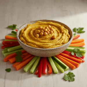 Beneficios nutricionales del hummus de garbanzos y cúrcuma El hummus de garbanzos y cúrcuma destaca por su alto contenido nutricional y propiedades saludables. Es una
